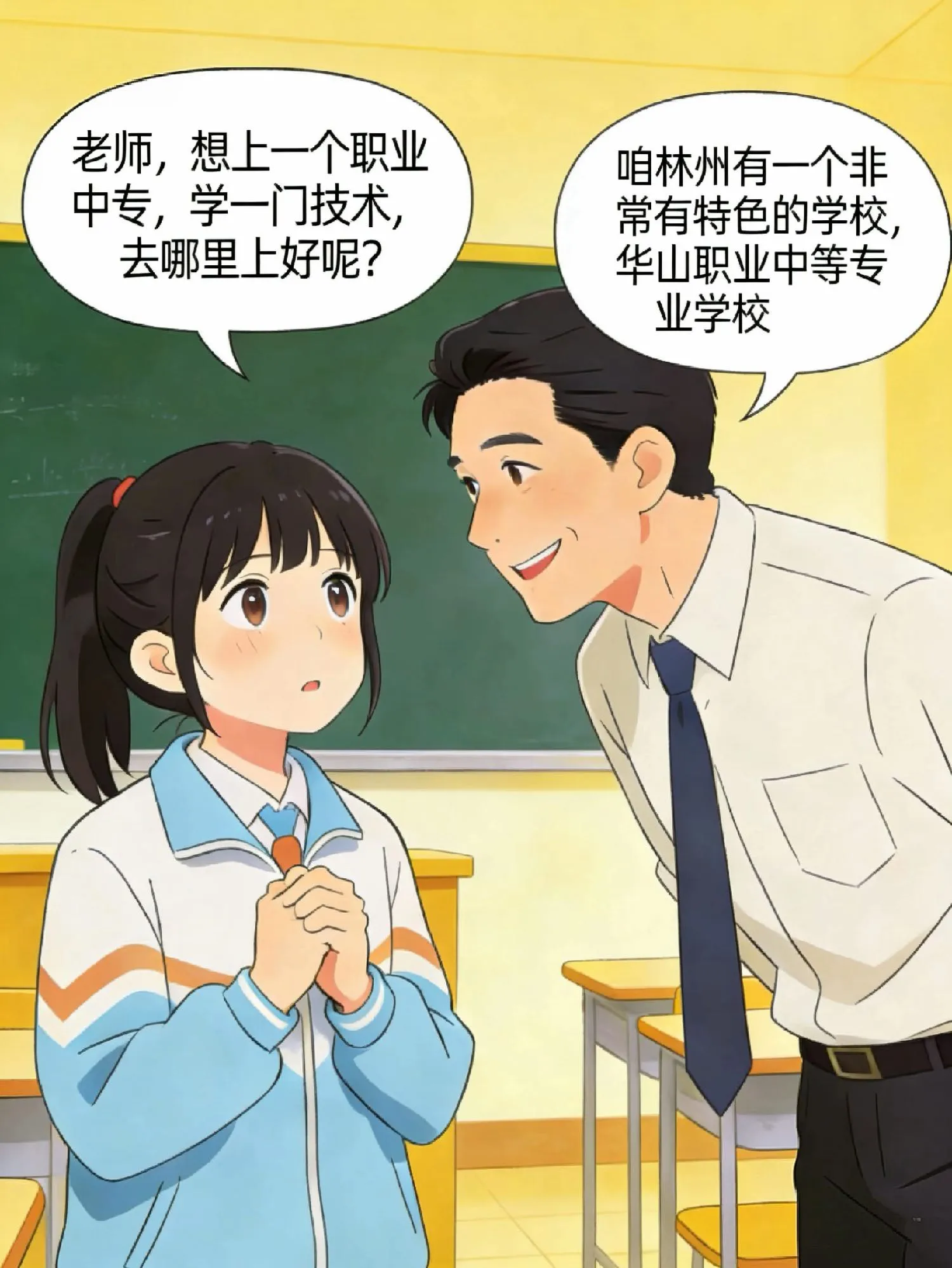 华华是即将毕业的九年级学生,成绩一般,上高中希望不大,想上一个职业中专,学一门技术。