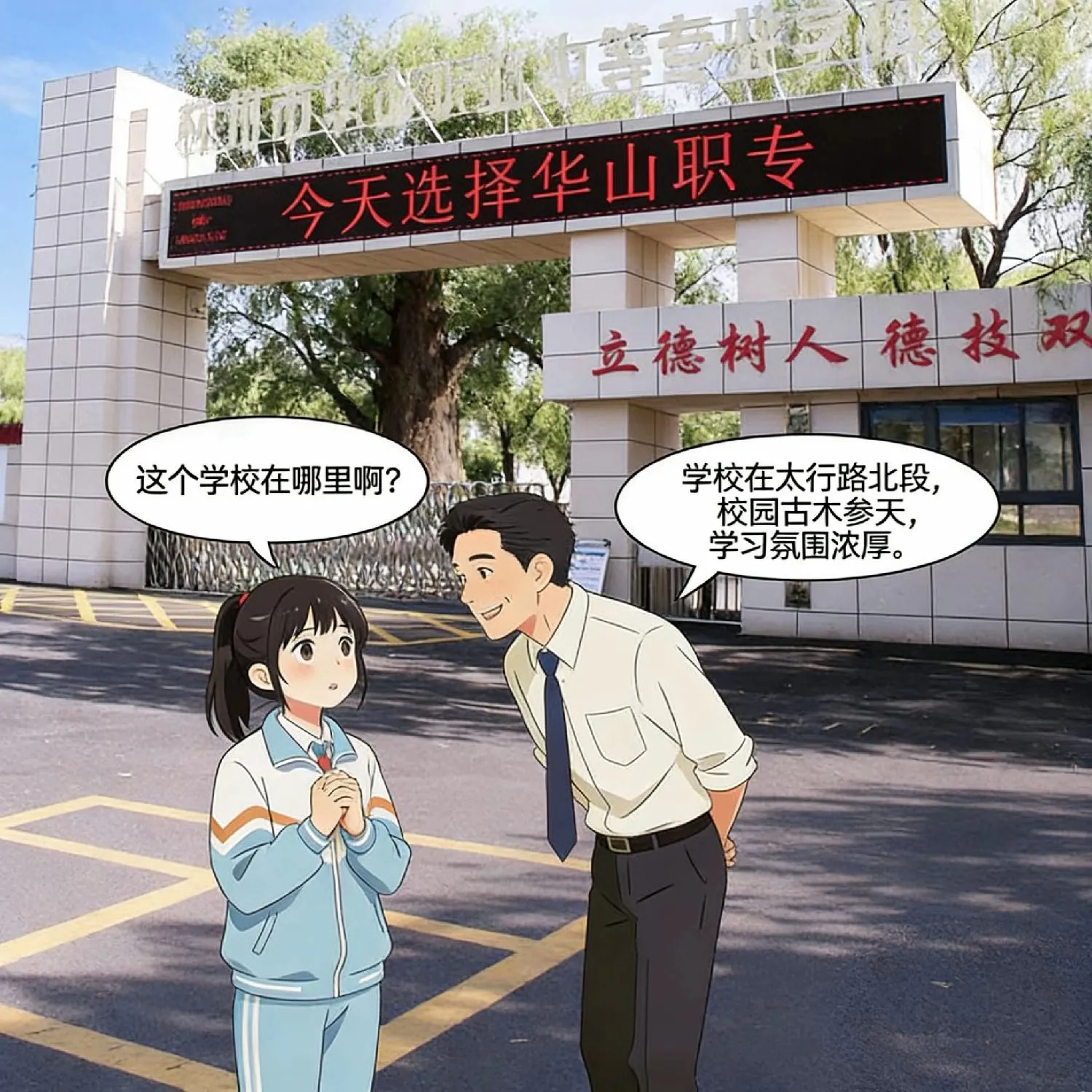 在华山职专,充满技术与艺术的交融,每一个孩子都在创造自己的精彩,每一个梦想都被悉心托举。路不止一条,精彩不止一种——你的未来,正在你手中一点点成型。风里雨里,不如有你,华山职专,我在等你。