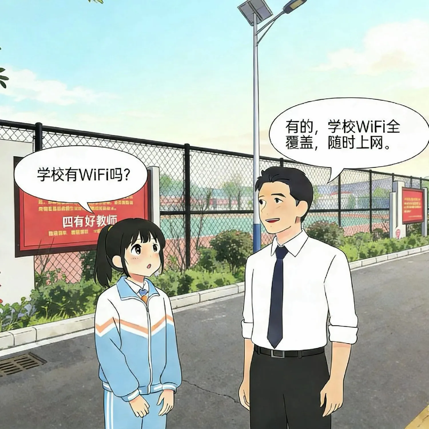 学校现有电脑240台,随时开放,同学们可以随便使用。wifi全覆盖,流量充足,随时上网。教室配备多媒体一体机、网络电视、空调,学习环境舒适,随时线上线下学习。学校坚持“升学就业两条路、知识技能都不误”的办学理念,为你们着想,为你们的未来规划。