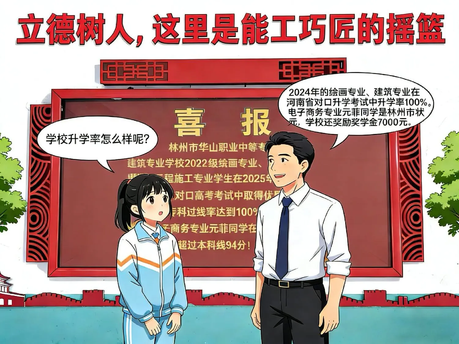 2024年的绘画专业、建筑专业在河南省对口升学考试中升学率100%,电子商务专业元菲同学是林州市状元,学校还奖励奖学金7000元。